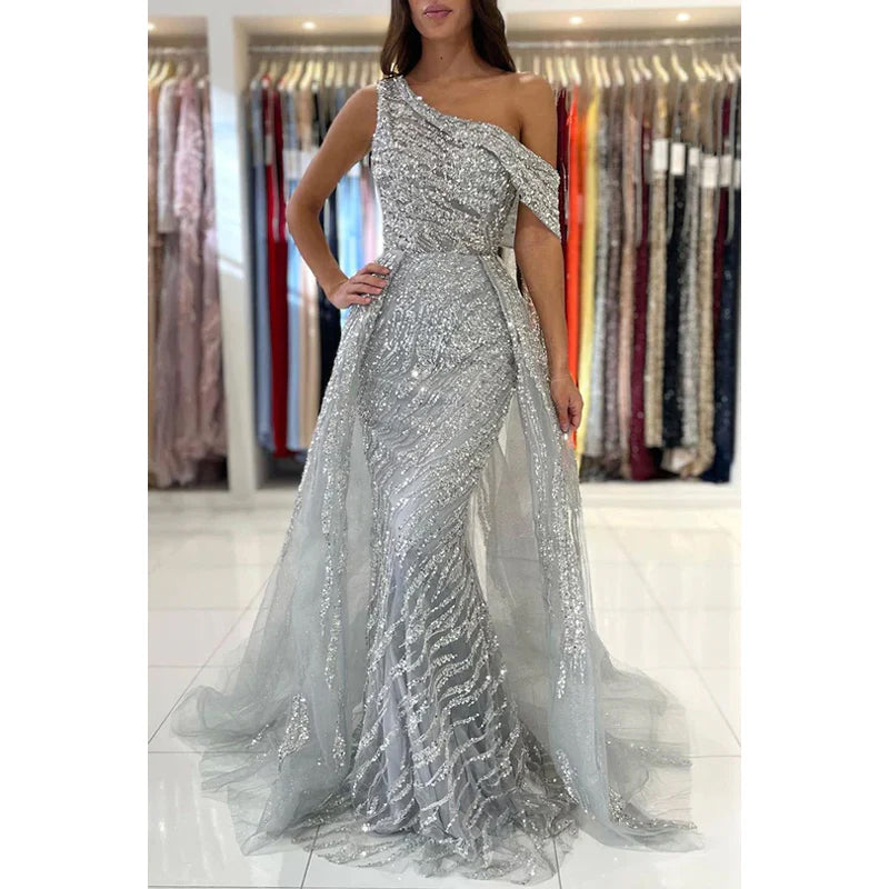 Vestido elegante de sirena con un solo hombro, sin mangas, para fiesta de noche y graduación