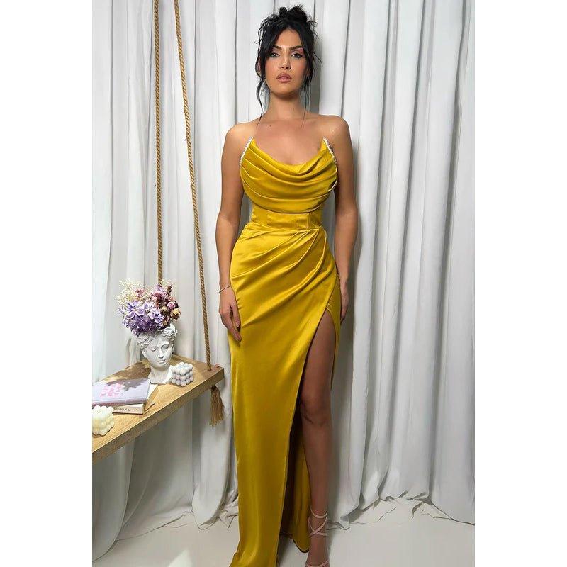 Vestido formal para fiesta, graduación, clásico y atemporal, sin mangas, con abertura lateral, fruncido y escote redondo