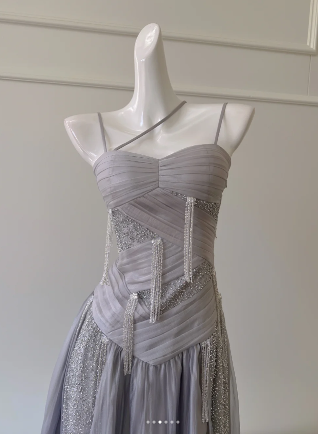 Elegante vestido de fiesta morado con lentejuelas, tul, cuentas y borlas, corte en A, modelo Y8586