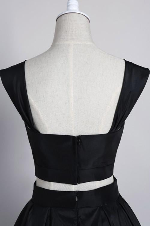 Elegantes vestidos cortos de dos piezas azul marino oscuro con hombros descubiertos para fiestas de bienvenida