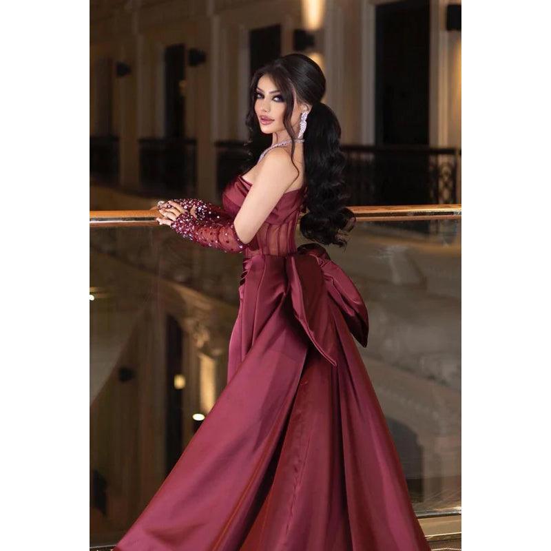 Elegante y lujoso vestido de fiesta con mangas cortas y hombros descubiertos