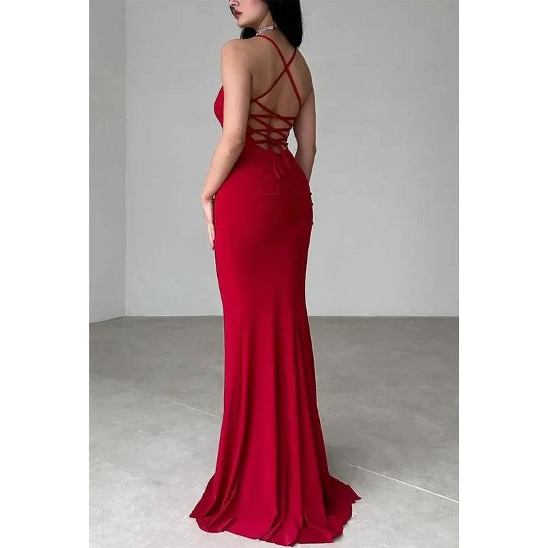 Vestido de fiesta de graduación de noche con tirantes finos y encaje