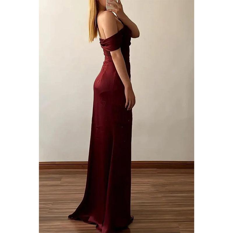 Vestido de noche ajustado con hombros descubiertos, fruncido y abertura lateral para fiesta de graduación