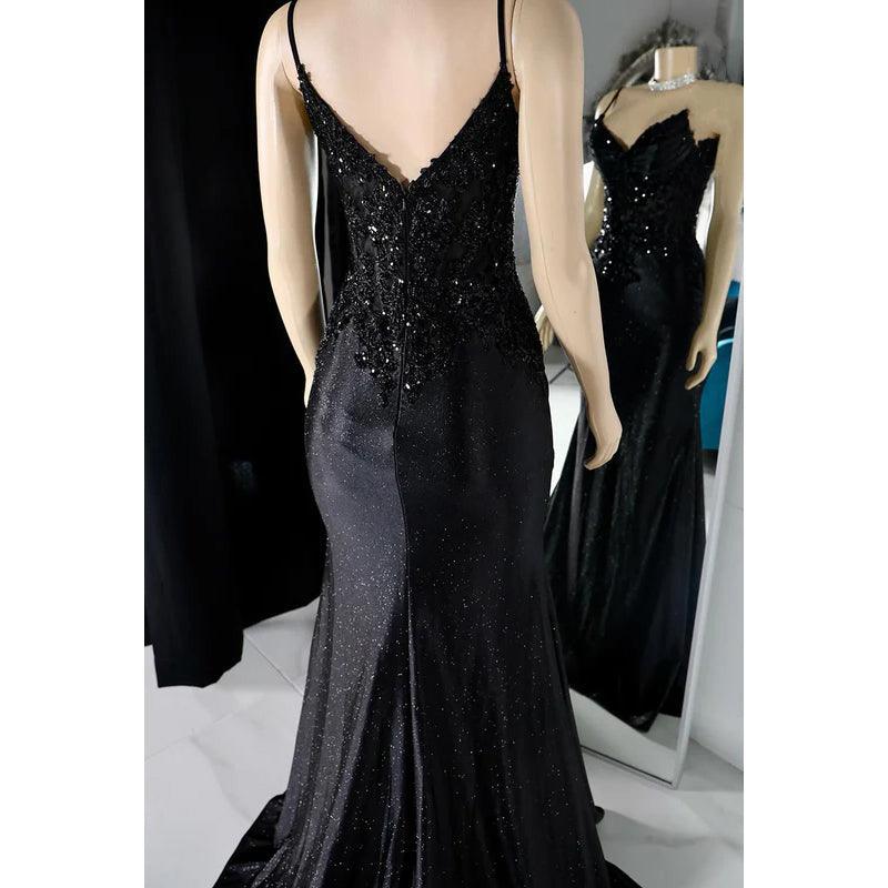 Vestido de fiesta de noche con lentejuelas y escote en V, estilo sirena, glamuroso y dramático, con tirantes finos