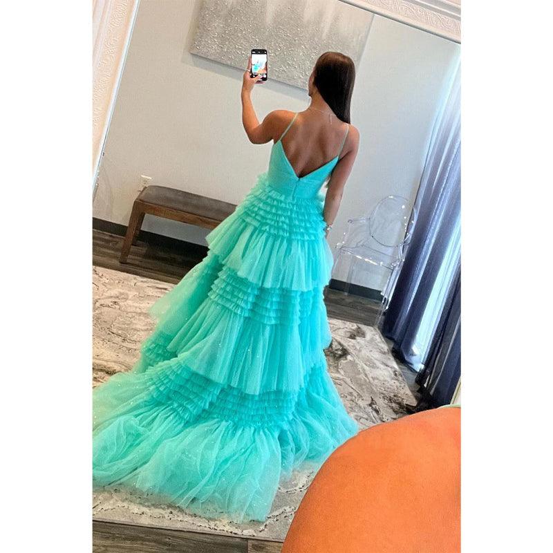 Vestido de fiesta con escote en V, tirantes finos y purpurina, vestido de noche