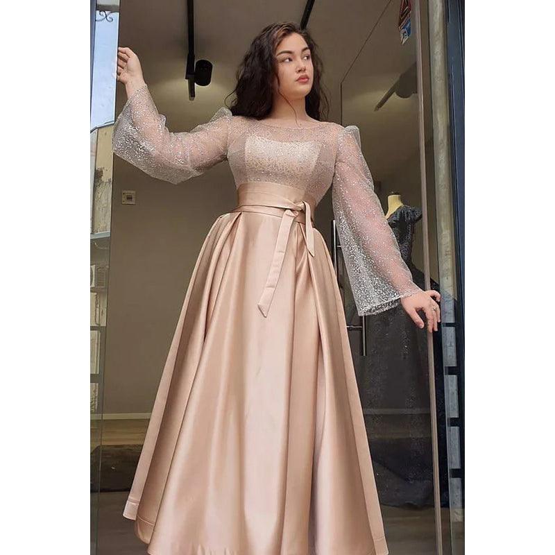 Hermoso y encantador vestido formal de fiesta de graduación con mangas largas y brillantes de corte A