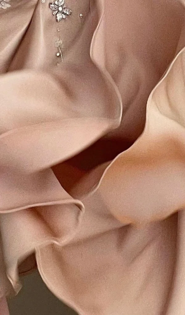 Vestido de fiesta de lujo color nude satinado con cuentas de diamantes bordadas a mano Y4542