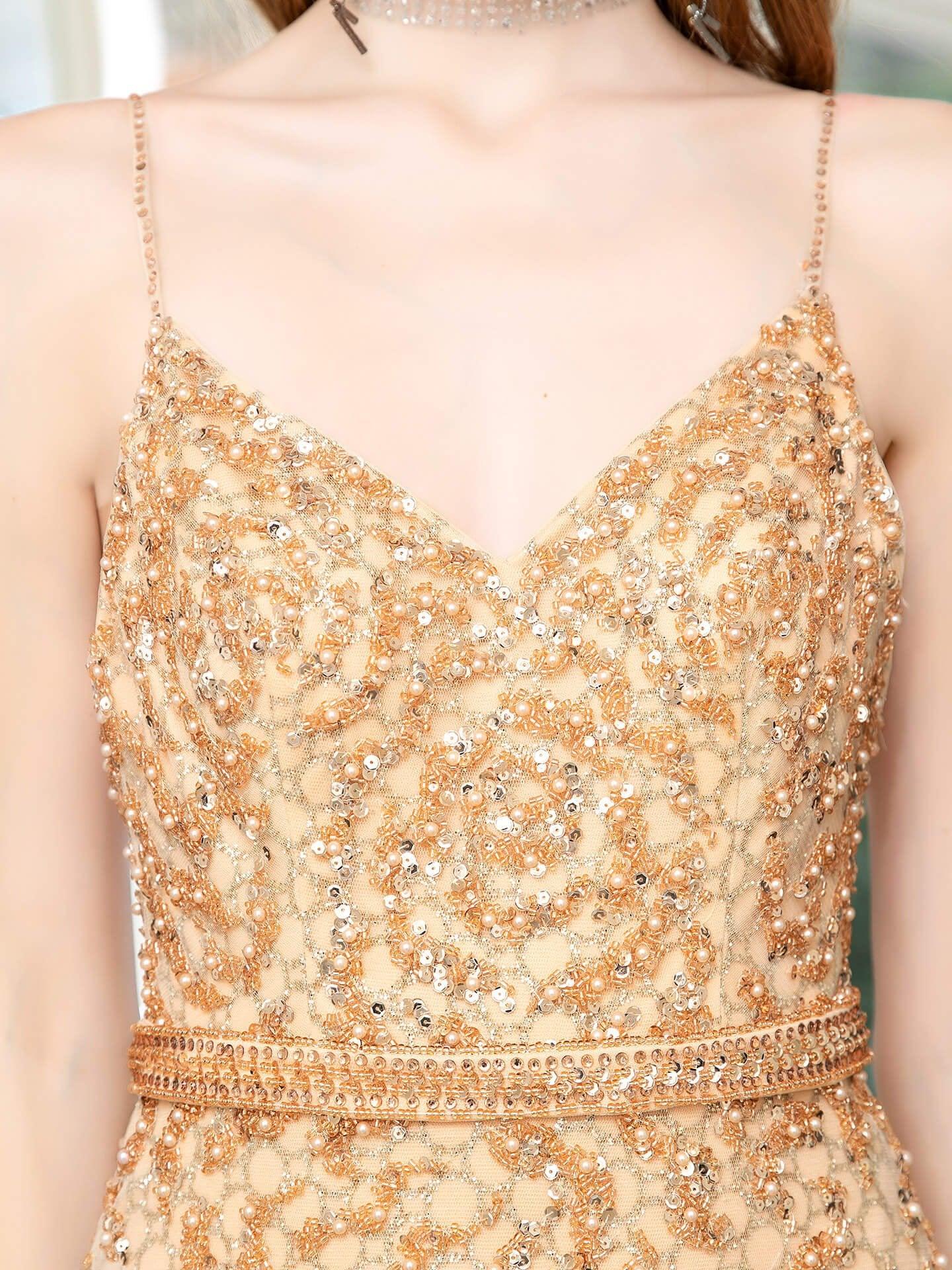 Vestido de noche formal de lujo con estampado de sirena, cuentas, tirantes finos, sin mangas y largo hasta el suelo, de Baoleely.