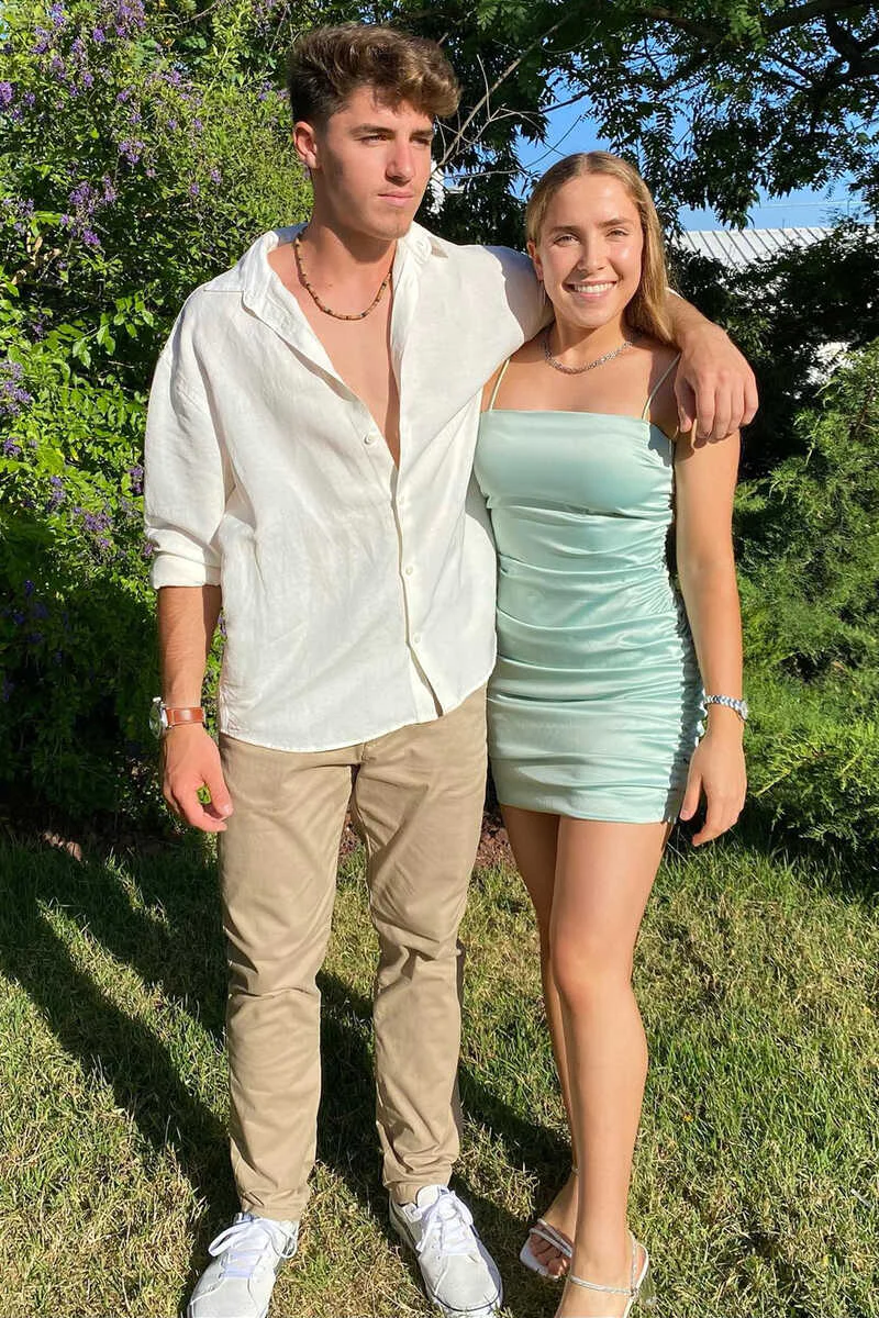 Vestido corto de cóctel fruncido con tirantes finos color verde menta, ideal para fiestas de bienvenida (modelo Y1774)