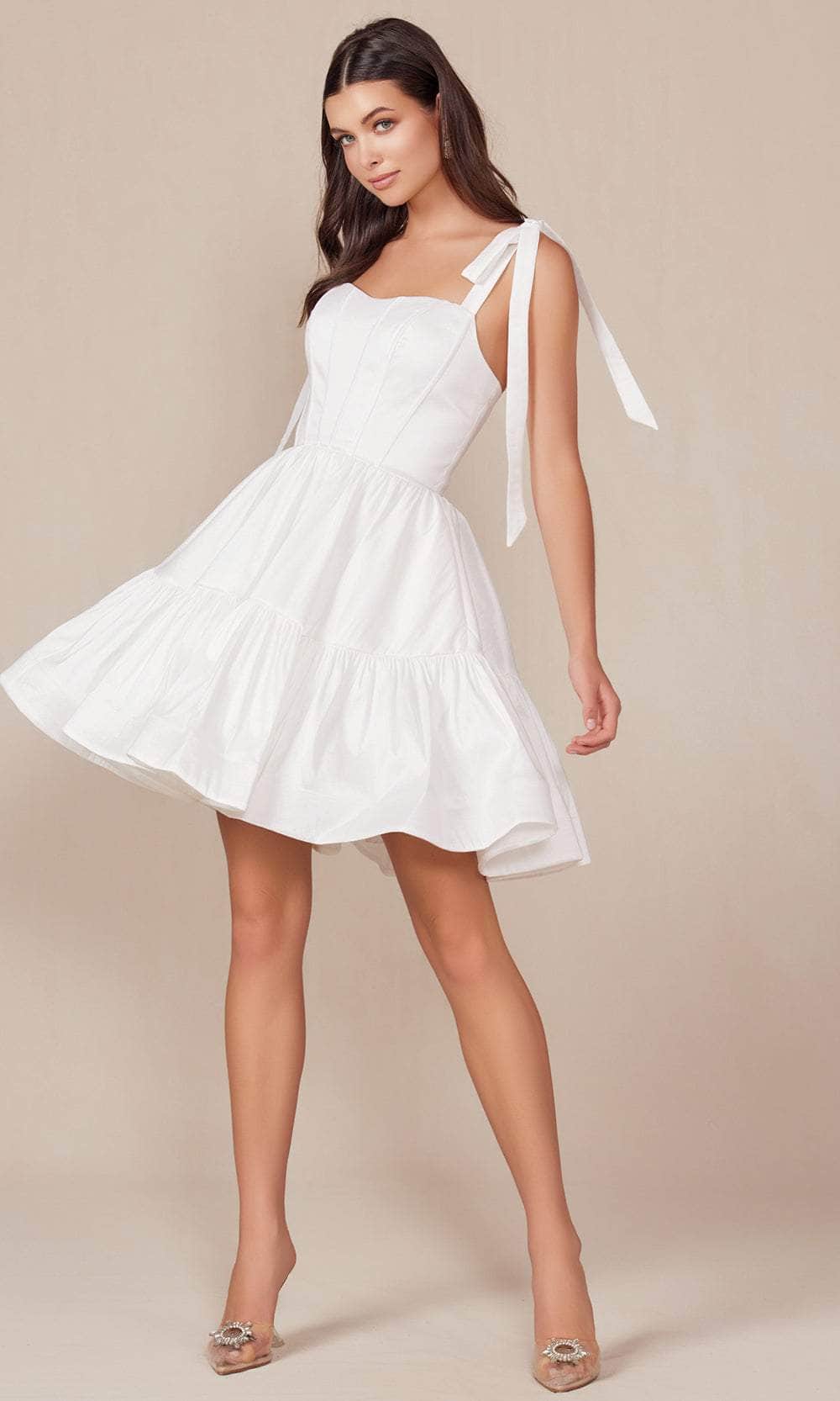 Deslumbra a todos con este fabuloso vestido corto Nox Anabel. Presenta un corpiño sin mangas con ballenas y un escote corazón. Incluye tirantes ajustables y un lazo para un ajuste personalizado. La cremallera en la espalda garantiza un ajuste perfecto, mientras que la falda de corte A añade un toque de encanto y elegancia. Ideal para diversas ocasiones especiales, este Nox Anabel T869W combina sofisticación y estilo moderno, asegurándote un look memorable dondequiera que vayas. La modelo lleva el color blanco.