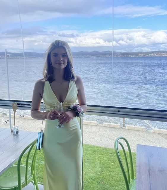 Vestido de fiesta amarillo pastel con escote en V, modelo Y6369