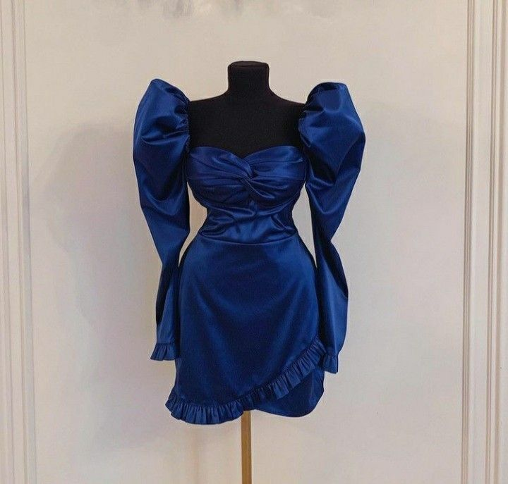 Vestido retro azul para baile de bienvenida con mangas largas Y2538