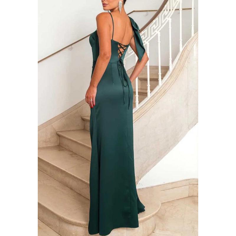 Vestido de noche de satén con escote en forma de corazón, tirantes finos y abertura lateral para fiesta de graduación