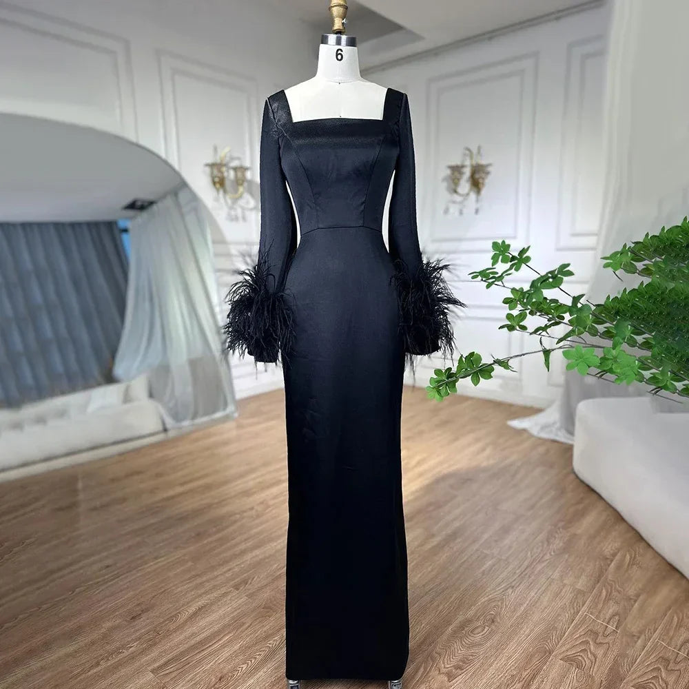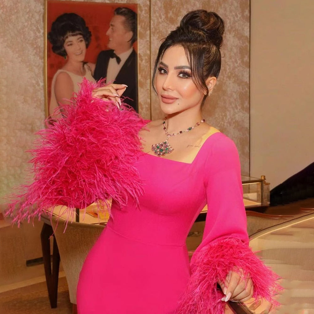 Vestidos de noche elegantes de sirena con plumas, estilo árabe fucsia, para mujer, ideales para bodas y fiestas (LA71987)