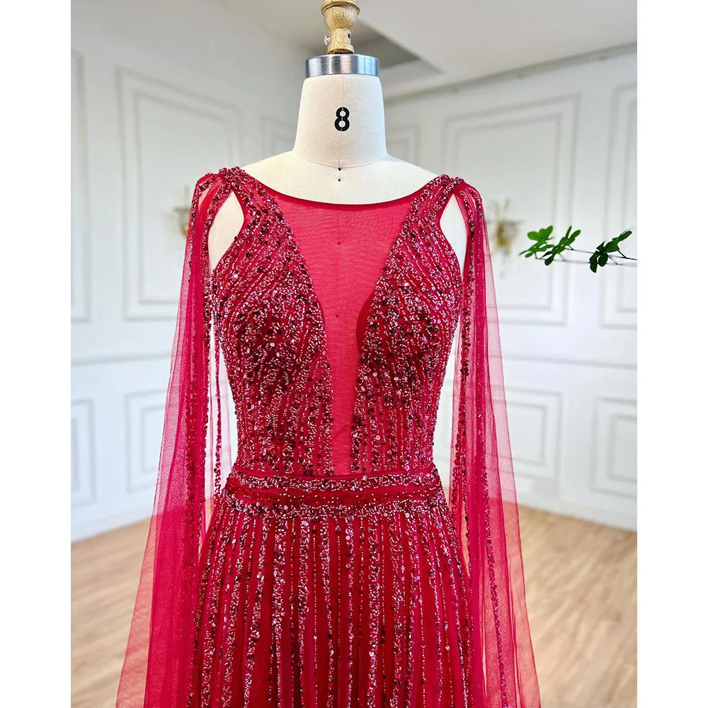 Vestidos largos de noche de lujo estilo Dubái, corte A, manga capa, bordados y con cuentas, colección 2025, para mujer, ideales para bodas y fiestas (LA71941)