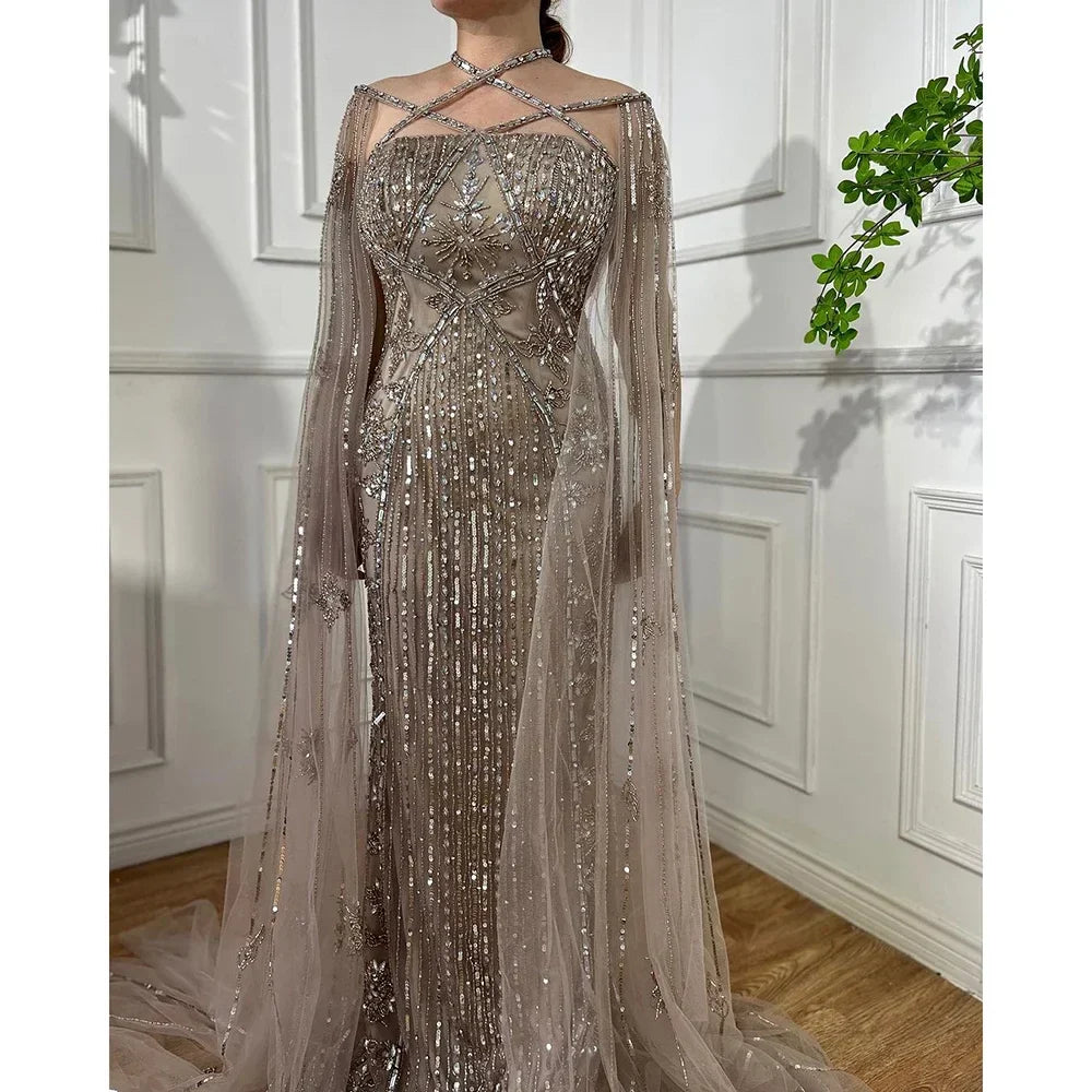 Las impresionantes mangas tipo capa y el diseño cruzado añaden un toque de sofisticación a cualquier boda. Confeccionado con esmero y con los mejores materiales, este vestido te hará sentir como una auténtica diosa sirena.