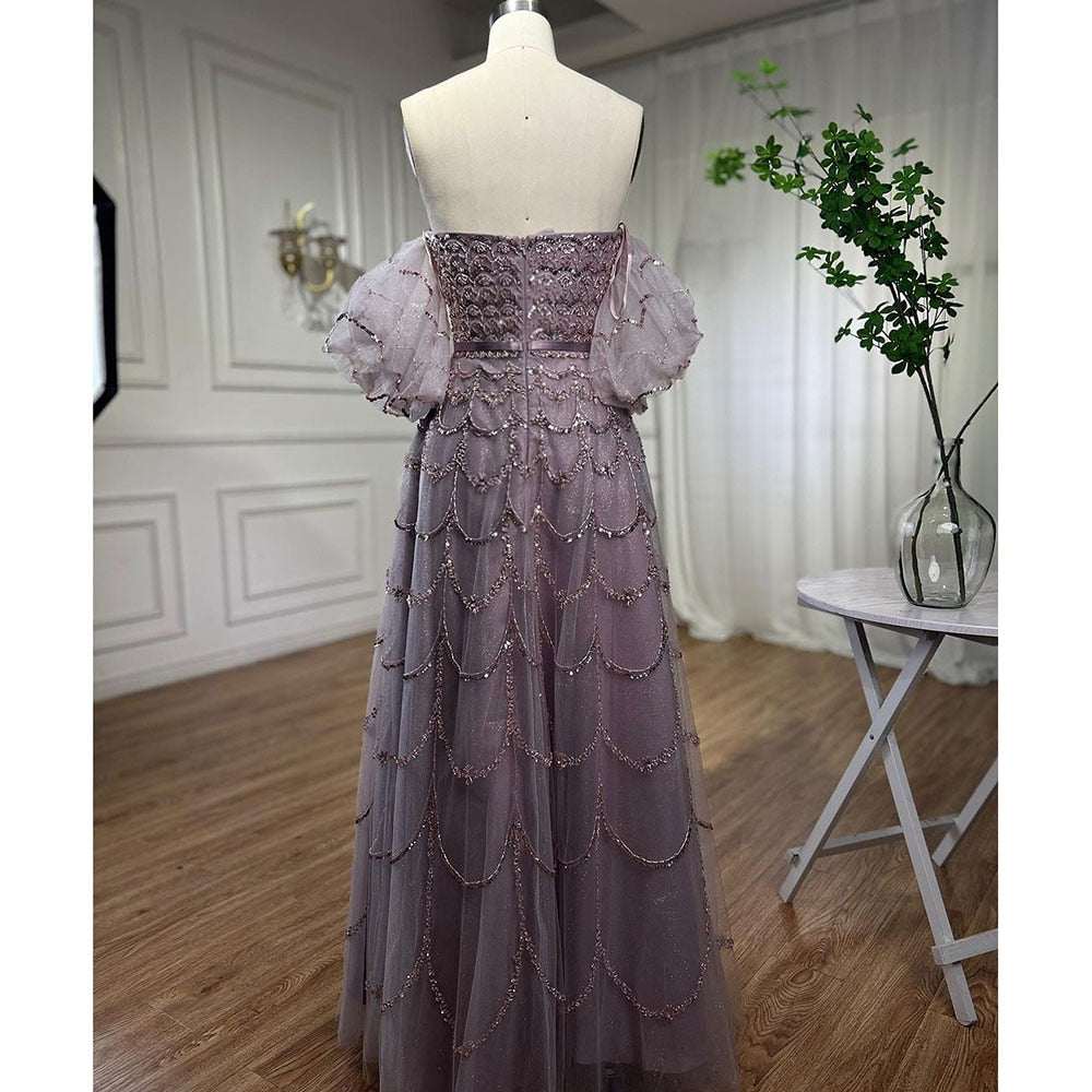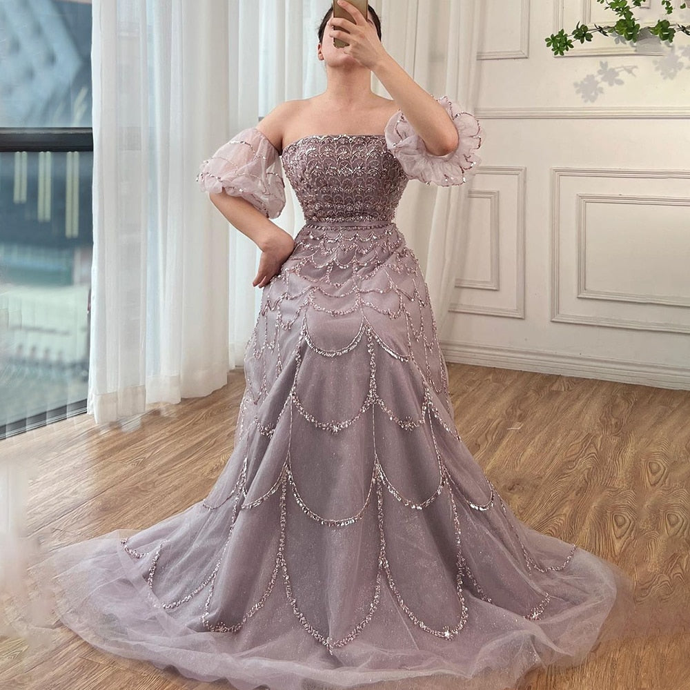 Vestidos de noche largos, elegantes, de sirena, sexis, sin tirantes, con cuentas, color rosa árabe, para mujer, para bodas y fiestas 2025 LA72130
