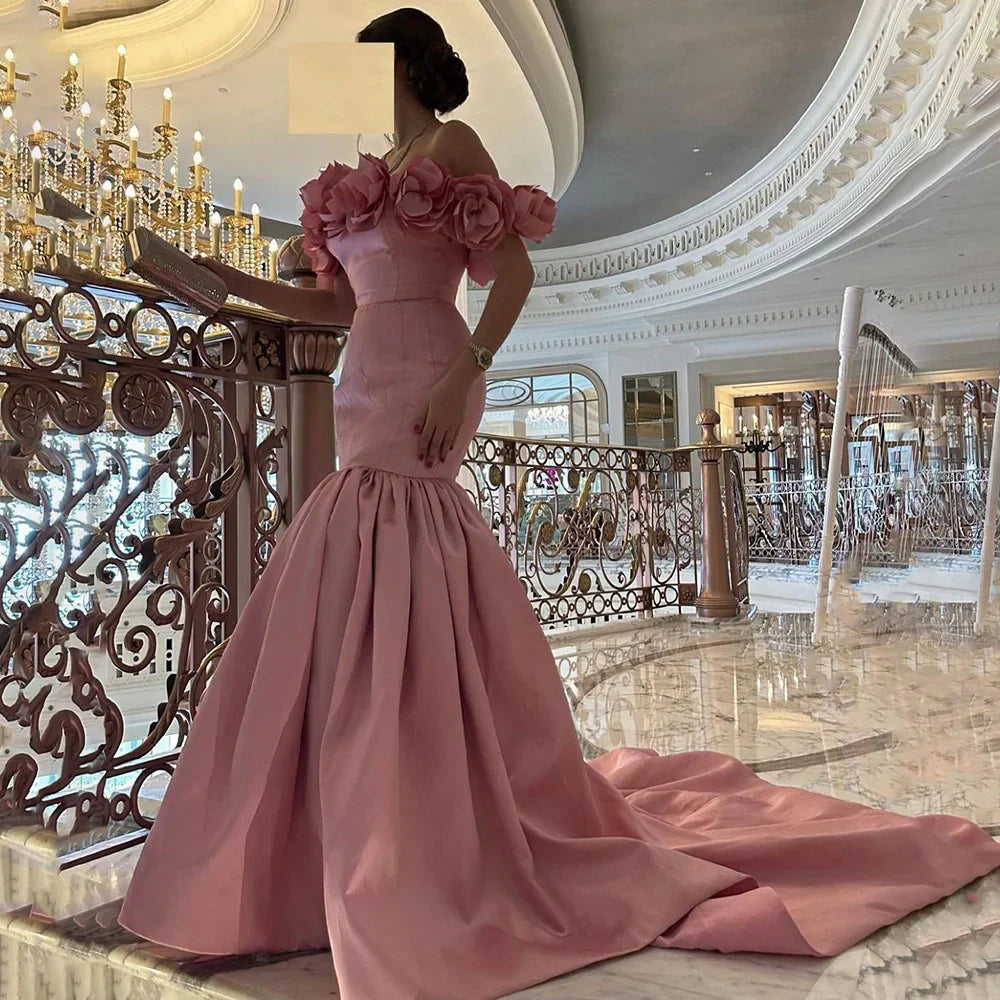 Vestidos de noche de lujo estilo sirena rosa árabe, de satén, sin tirantes, con cuentas, estilo Dubái, colección 2025 para mujer, ideales para bodas y fiestas (LA72250)