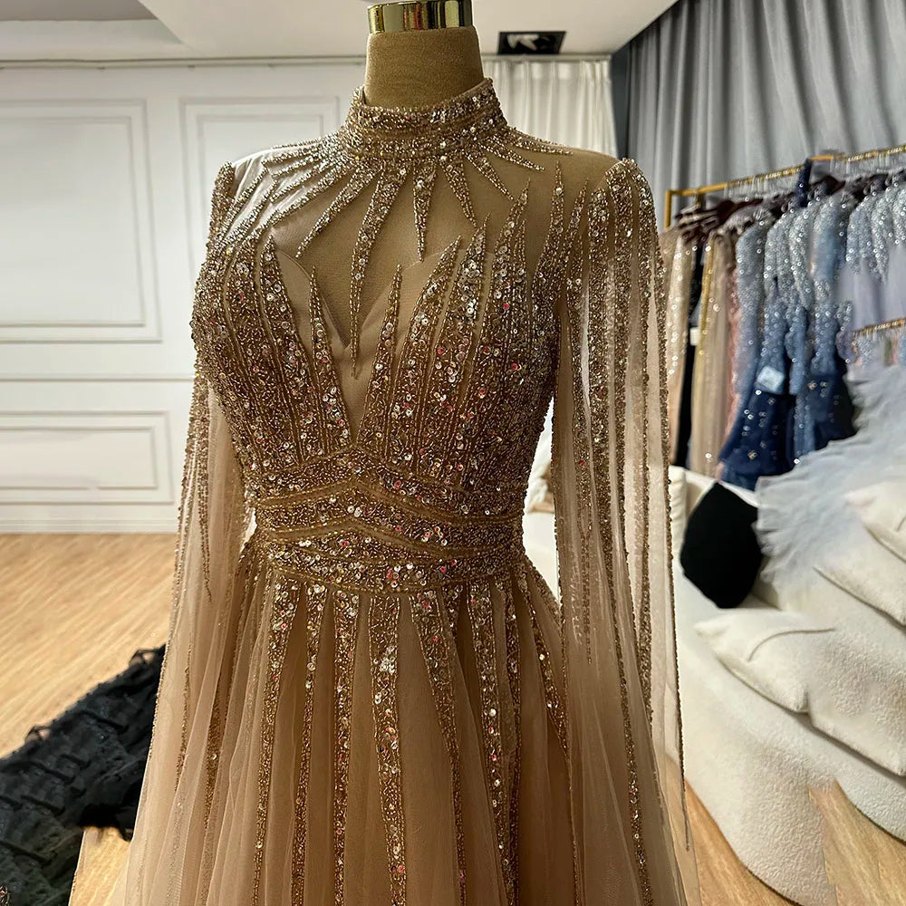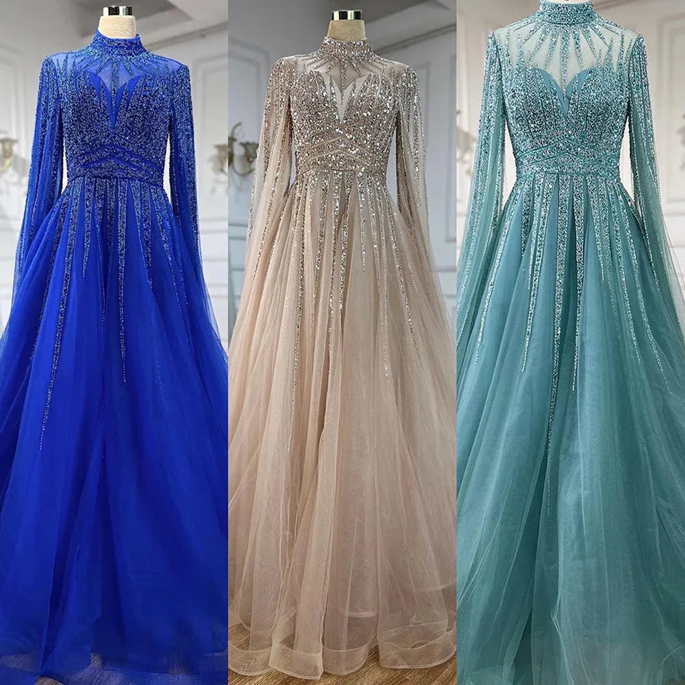 Vestidos de noche estilo Dubai, corte A, color turquesa árabe, con cuentas y mangas tipo capa, para mujer, ideales para bodas y fiestas (2025) LA72199