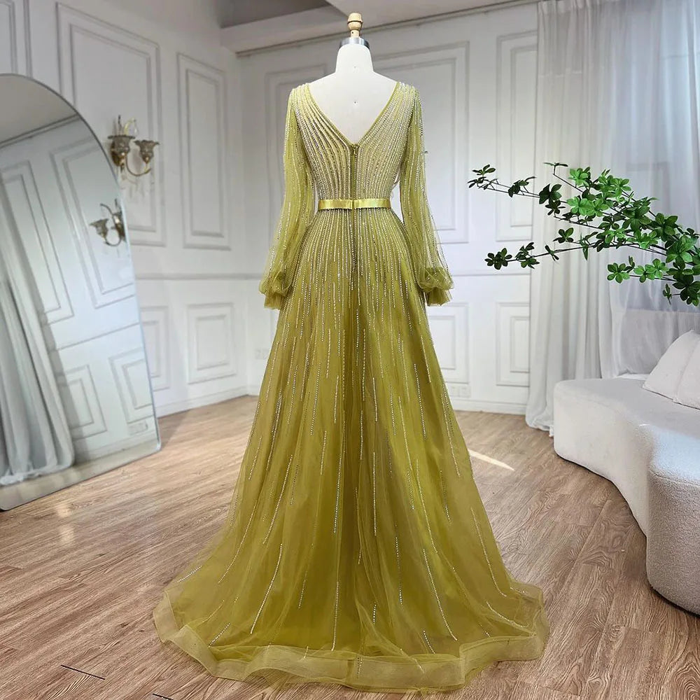 Vestidos de noche elegantes de lujo con cuentas, corte en A, color amarillo árabe, estilo Dubai, para mujer, ideales para bodas y fiestas (2025) LA72300