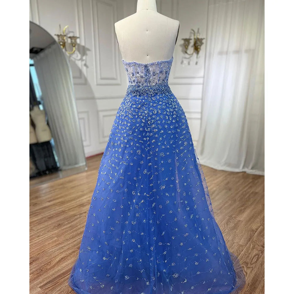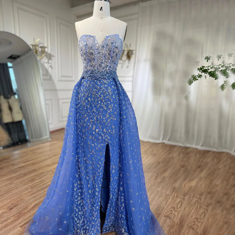 Vestido de fiesta sirena azul con abertura alta, falda, escote corazón, sin tirantes, con cuentas, para mujer, de noche, 2025 LA71796