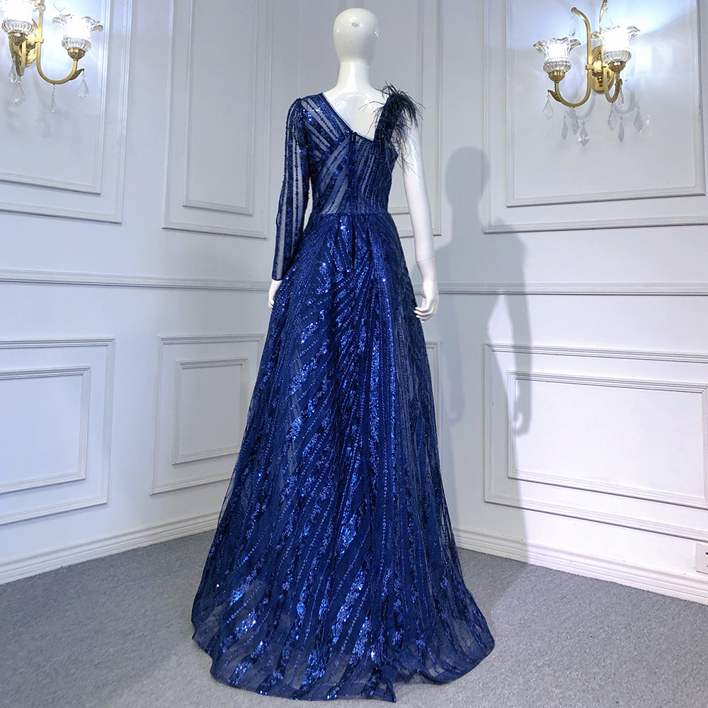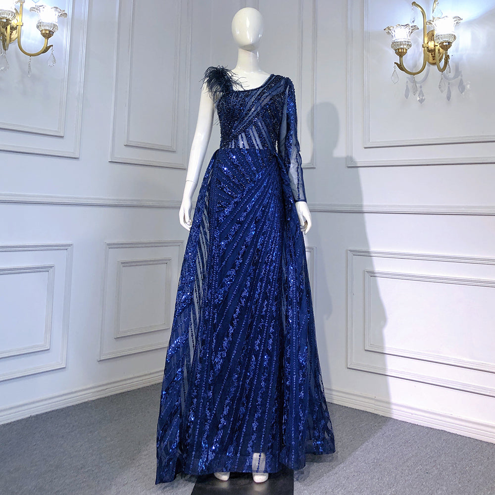 Vestidos de noche sirena con sobrefalda azul, elegantes y lujosos, con un solo hombro, para mujer, estilo LA71608 (Colección 2025).