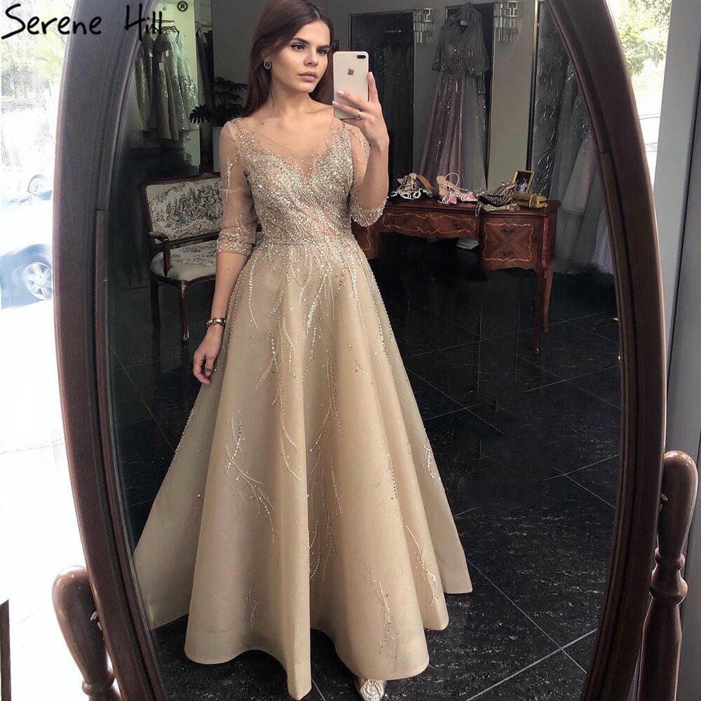 Vestidos de noche dorados de lujo, corte A, con cuentas brillantes, sexys, para mujer, para fiestas, LA70823