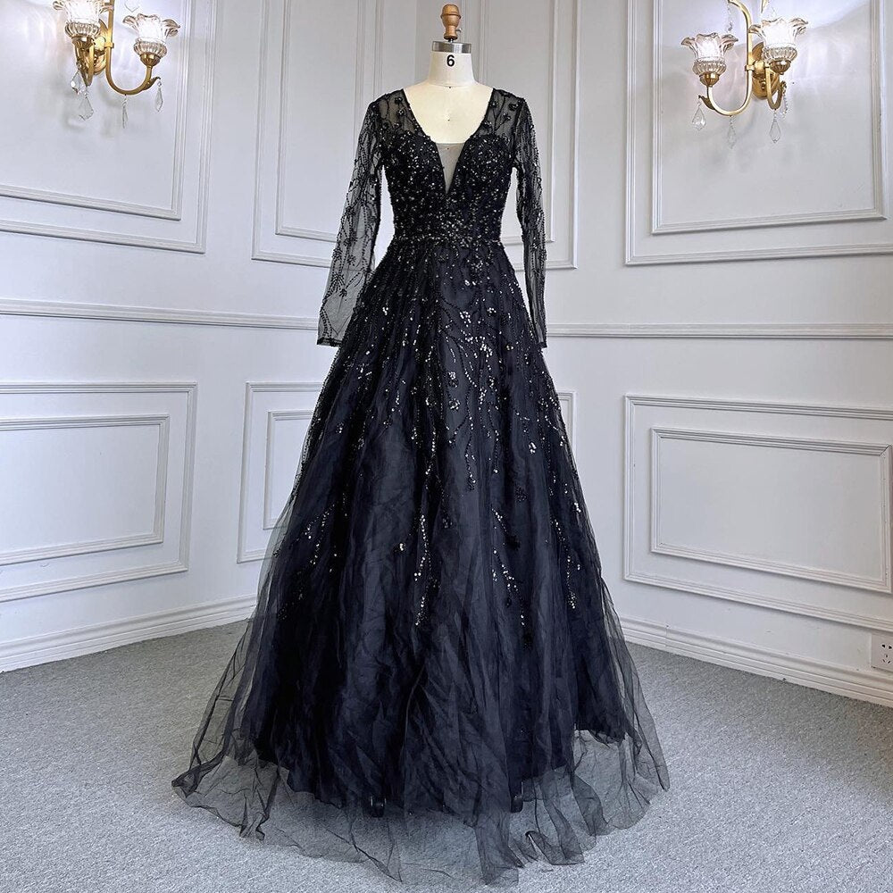 Vestidos de noche de lujo con cuentas, corte en A, escote en V, manga larga, color verde, para mujer, ideales para bodas y fiestas (modelo LA71702).
