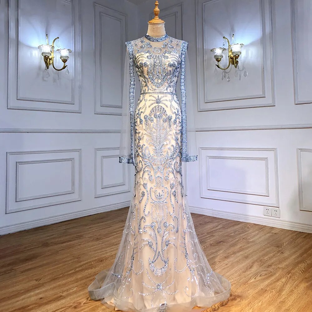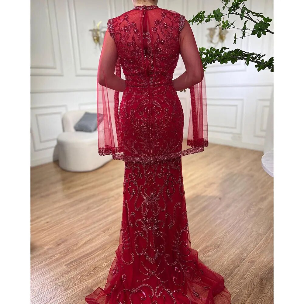 Vestidos de noche de lujo color gris nude con capa, sirena, elegantes y sexys, con cuentas, para mujer, fiesta, LA71027