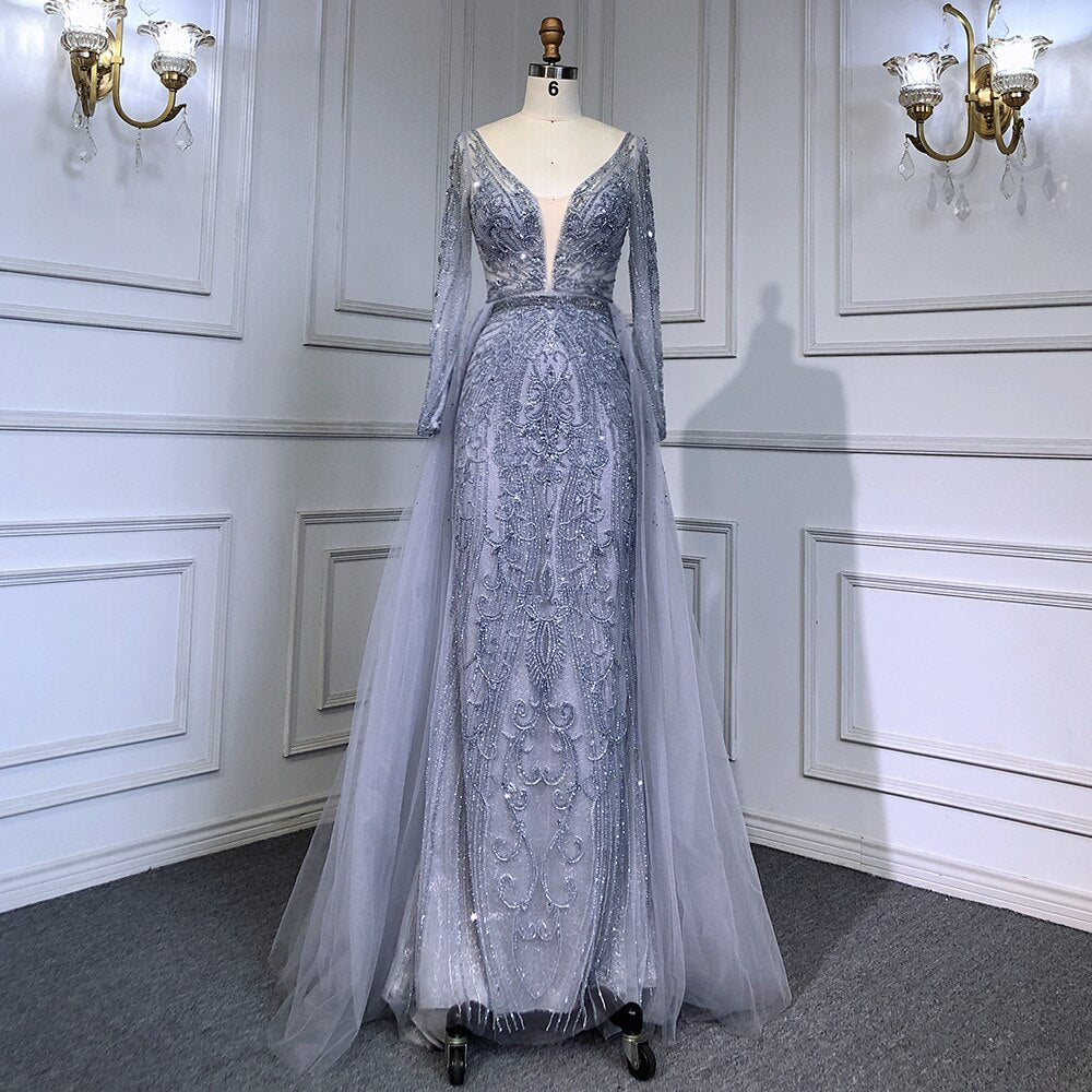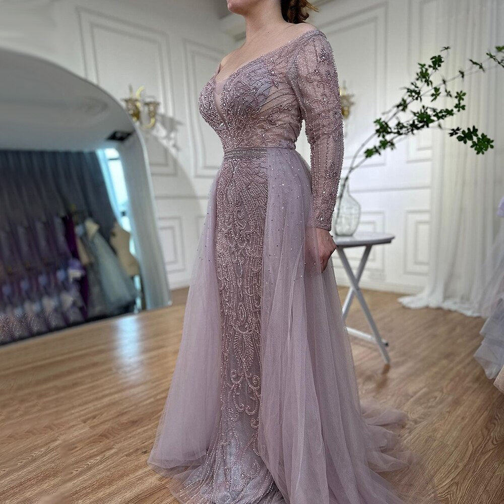 Vestido de noche elegante de sirena, de lujo, musulmán, rosa, con cola, para mujer, fiesta, LA70433