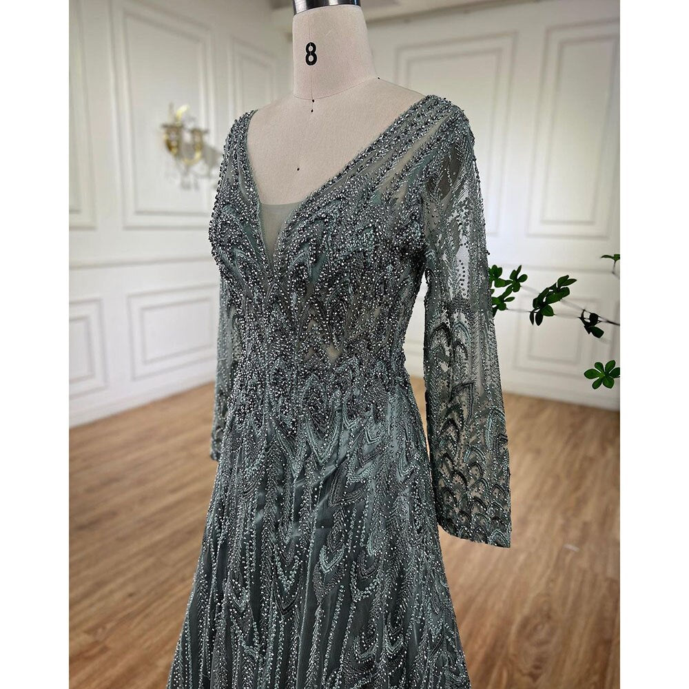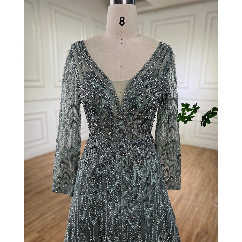 Vestidos de noche musulmanes de lujo con cuentas turquesa, corte A, midi, para mujer, formal, boda, fiesta, LA72122