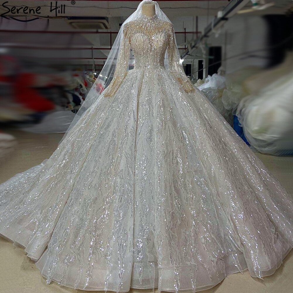 Vestidos de novia musulmanes de lujo color marfil, 2025, con cuentas de cristal, sexy, HM67226, hechos a medida