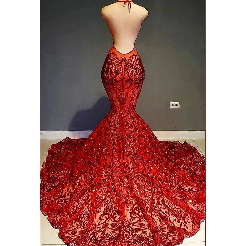 Vestido de fiesta sexy y atractivo con tirantes finos, escote en V profundo, sin mangas, corte sirena, espalda descubierta y lentejuelas