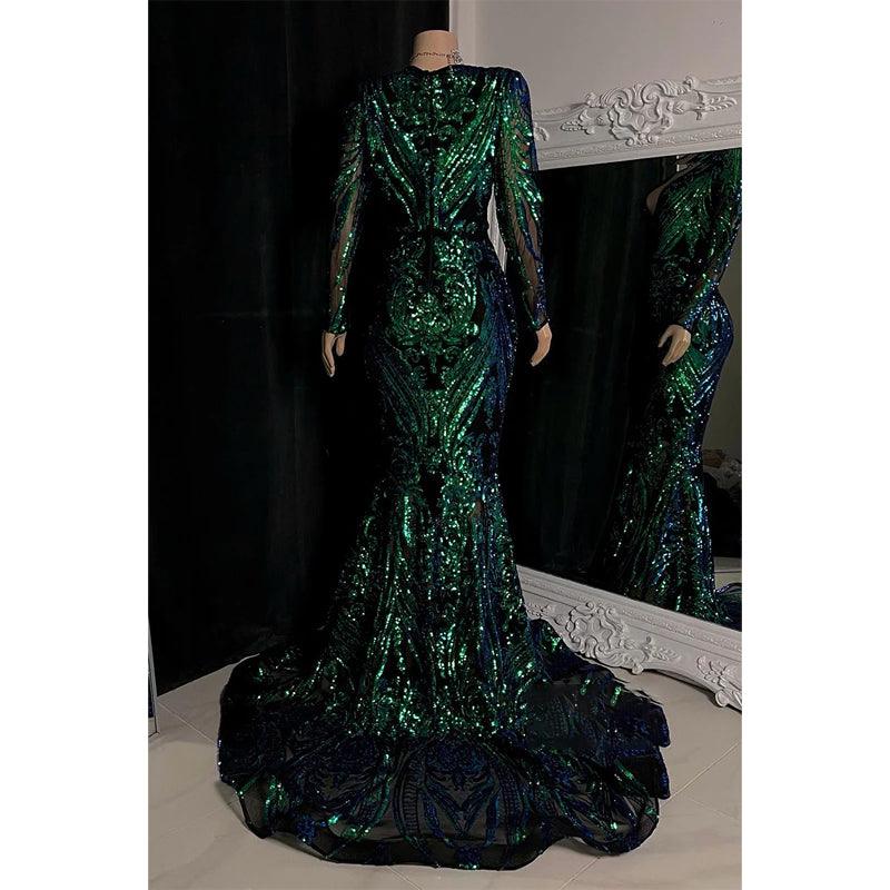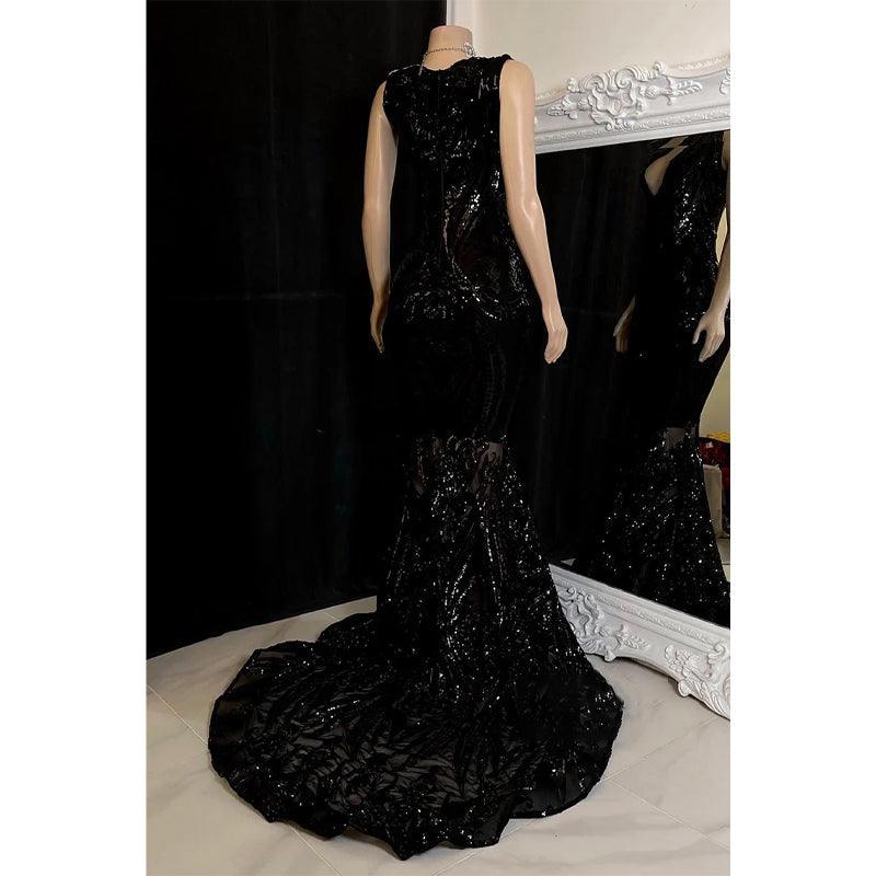Vestido de fiesta de sirena con apliques de lentejuelas y escote en V sexy para chica negra para Slay