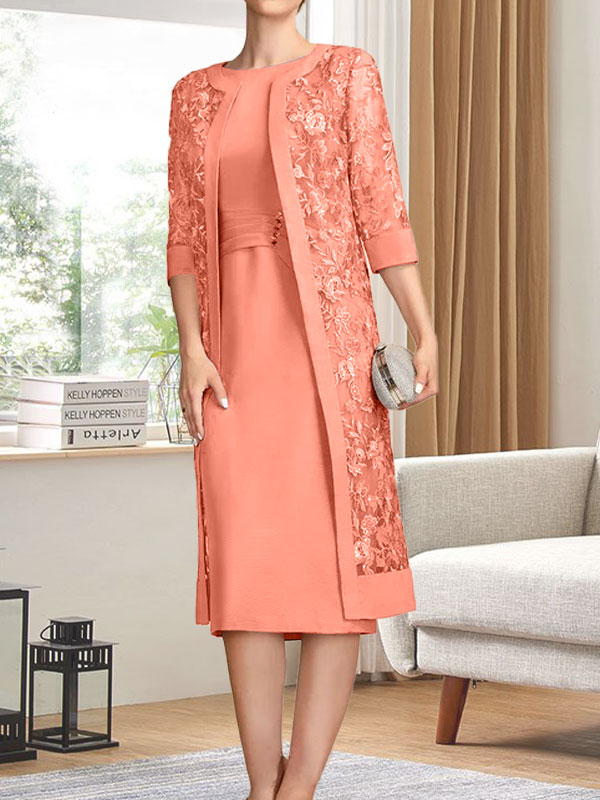 Vestido de gasa corte recto/columna hasta la rodilla para la madre de la novia con lentejuelas plisadas