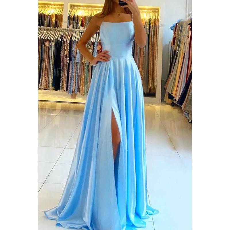 Vestido formal de noche de graduación sin mangas con pliegues de satén y tirantes finos