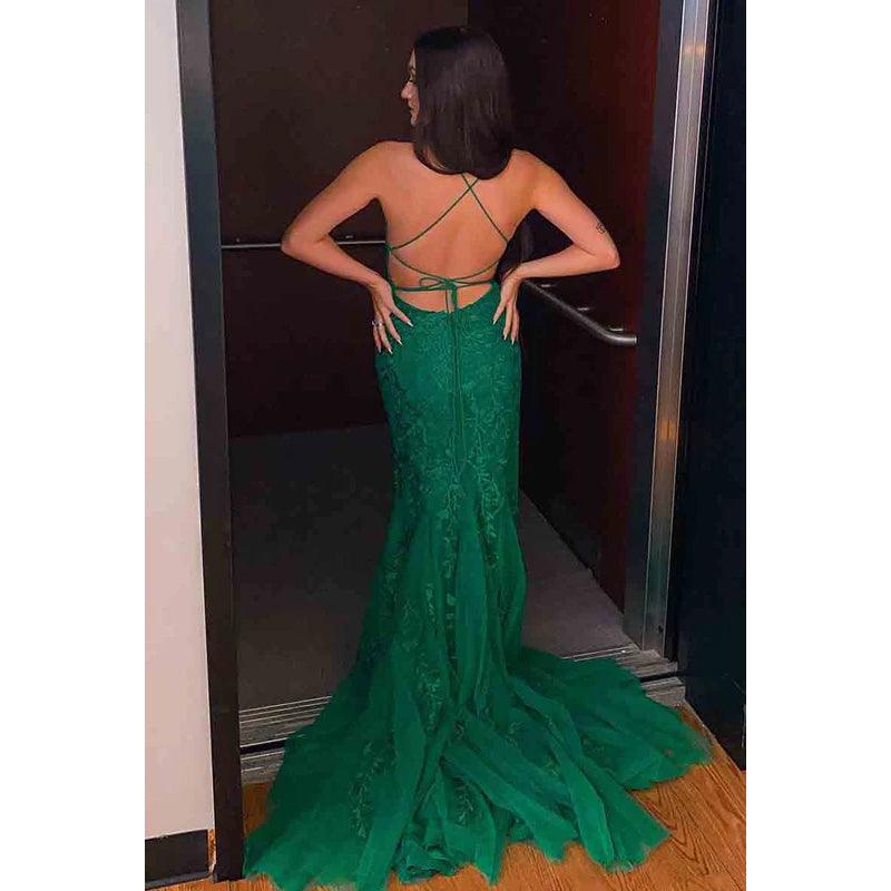 Vestido formal de noche para graduación, sin mangas, con tirantes finos y apliques de tul