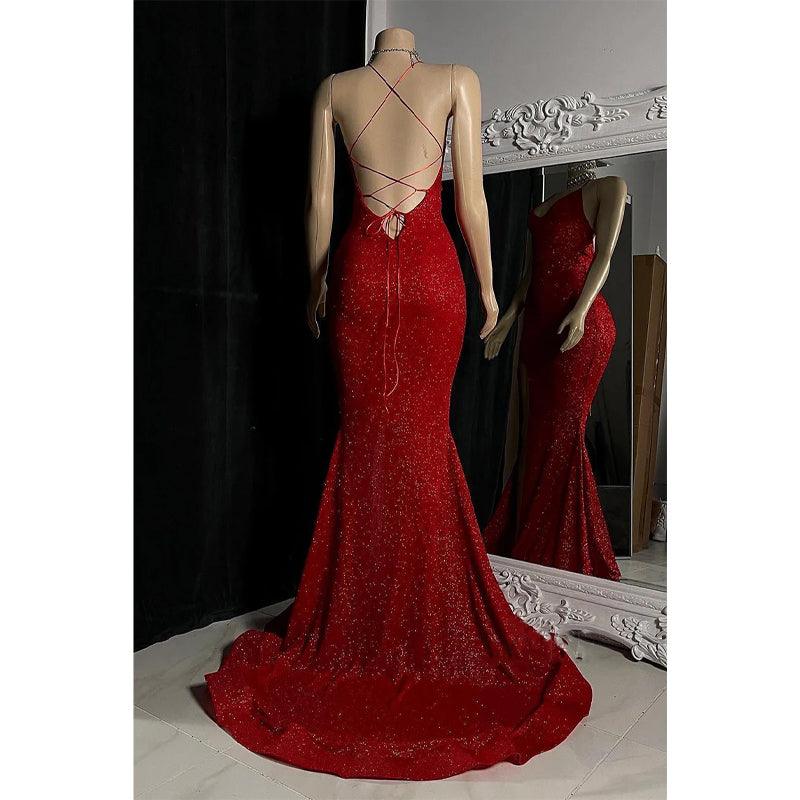 Vestido de fiesta de sirena brillante con tirantes finos y corte negro para chicas