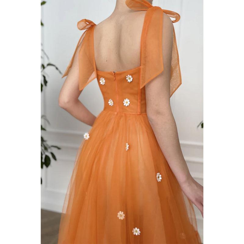 Vestido de fiesta largo de corte A con tirantes finos, escote en forma de corazón y apliques con bolsillos