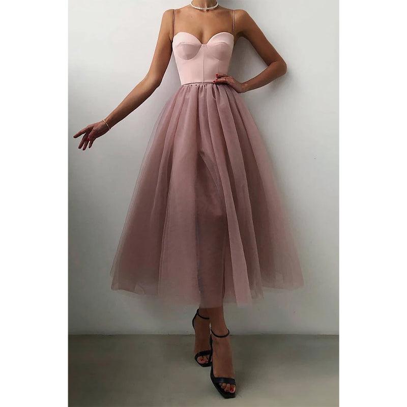 Vestido de fiesta de graduación sencillo con escote en V y tirantes finos