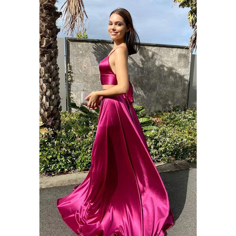 Vestido de fiesta de dos piezas con escote en V, tirantes finos y bolsillos