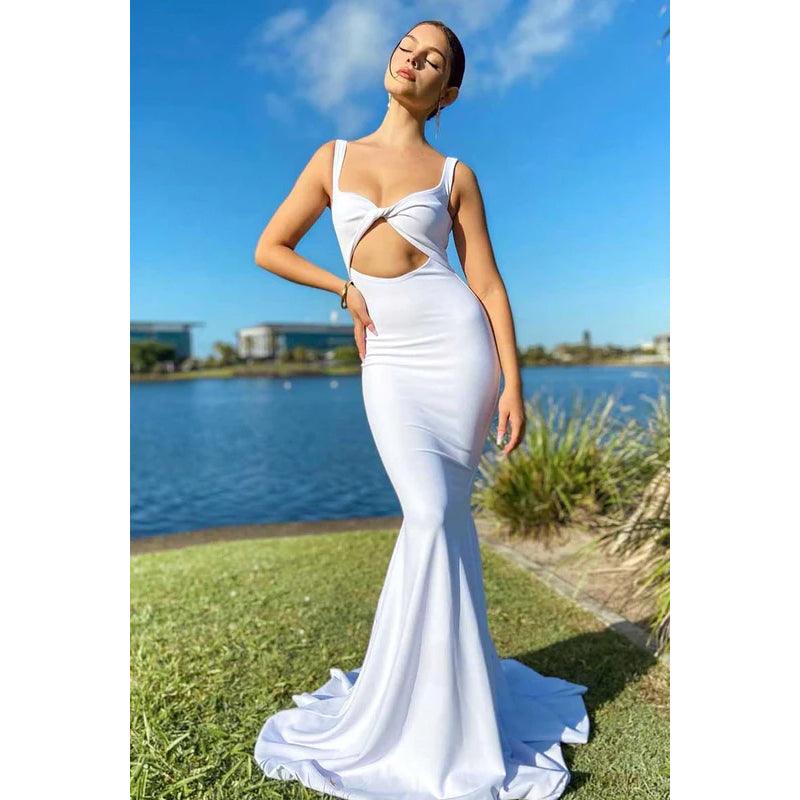 Vestido de fiesta largo con escote cuadrado, aberturas en la espalda y corte en forma de tubo