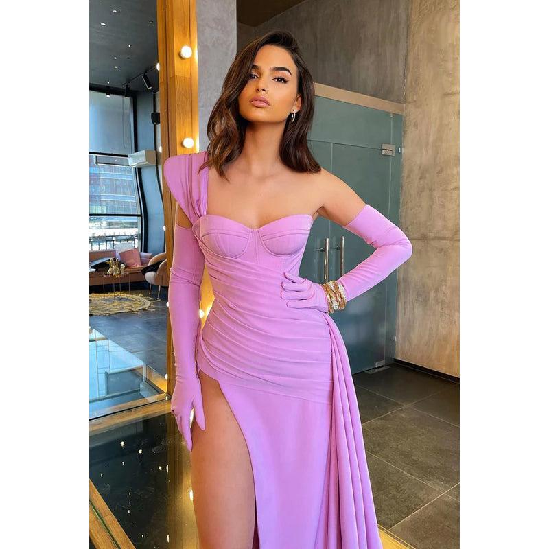 Vestido de noche largo de fiesta con escote corazón y un hombro fruncido