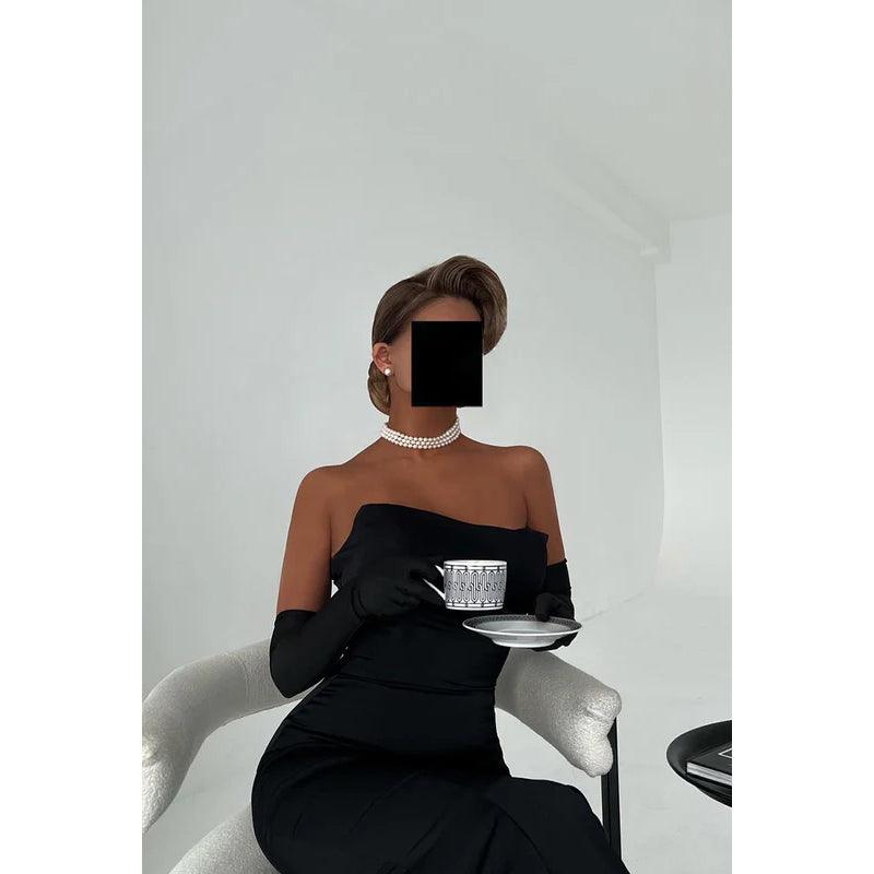 Vestido elegante de fiesta de noche con hombros descubiertos y corte trompeta/sirena