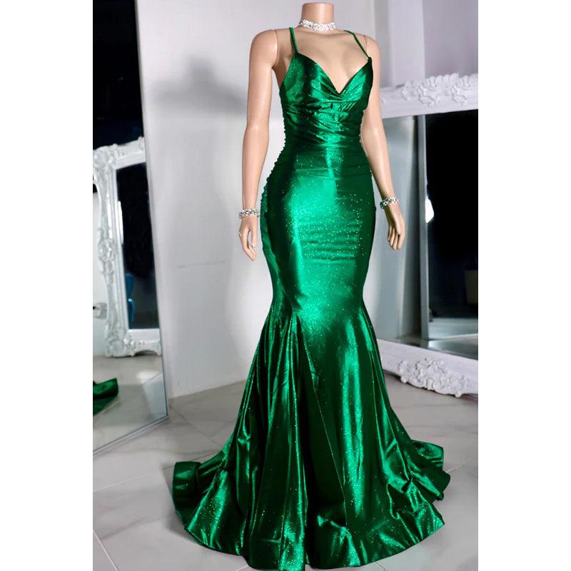 Vestido de fiesta sexy y atractivo de corte trompeta/sirena con tirantes cruzados, volantes y escote en V