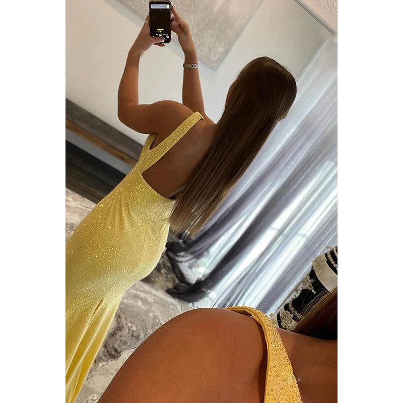 Vestido formal de noche de graduación con tirantes de trompeta/sirena, lentejuelas, espalda descubierta y sin mangas