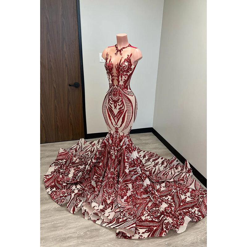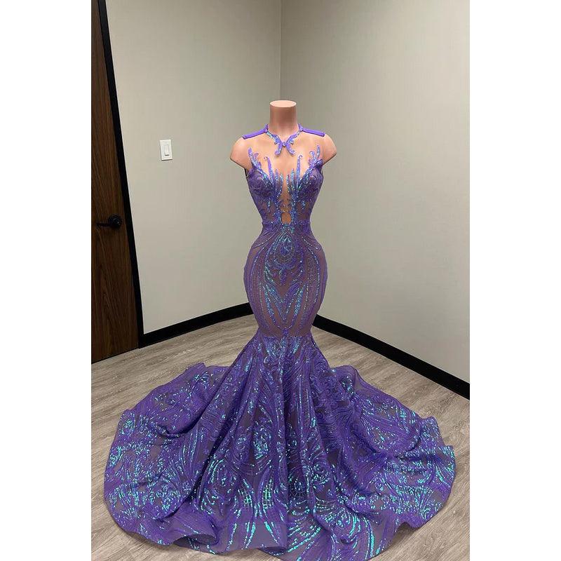 Vestido formal de noche de graduación con apliques de lentejuelas y encaje con escote en V y corte trompeta/sirena