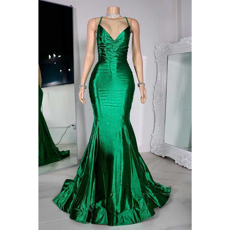 Vestido de noche de fiesta con escote en V y tirantes finos para chicas negras