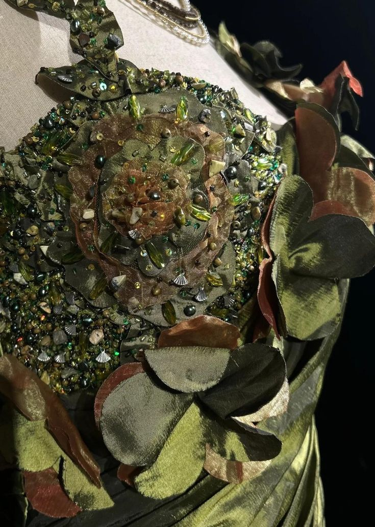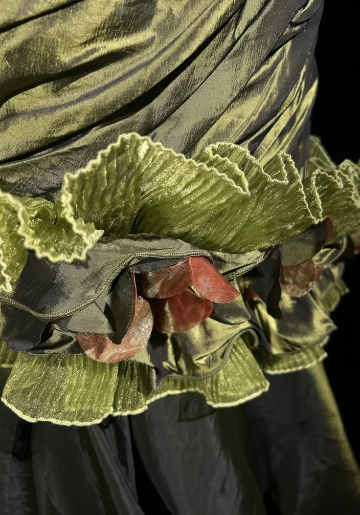 Vestido de noche vintage verde oscuro con escote irregular, satén, cuentas y corte sirena fruncido, modelo Y8560