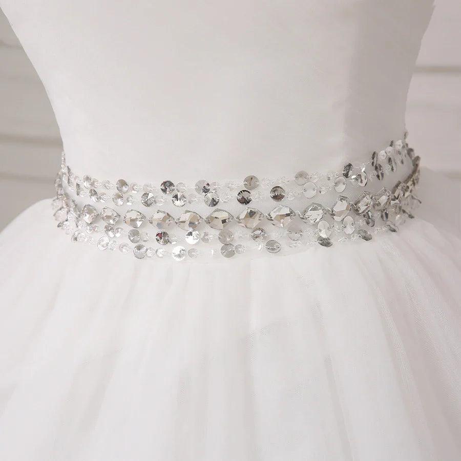 Vestido de novia con cinturón de abalorios, vestido de baile, escote corazón, sin mangas, de tul.